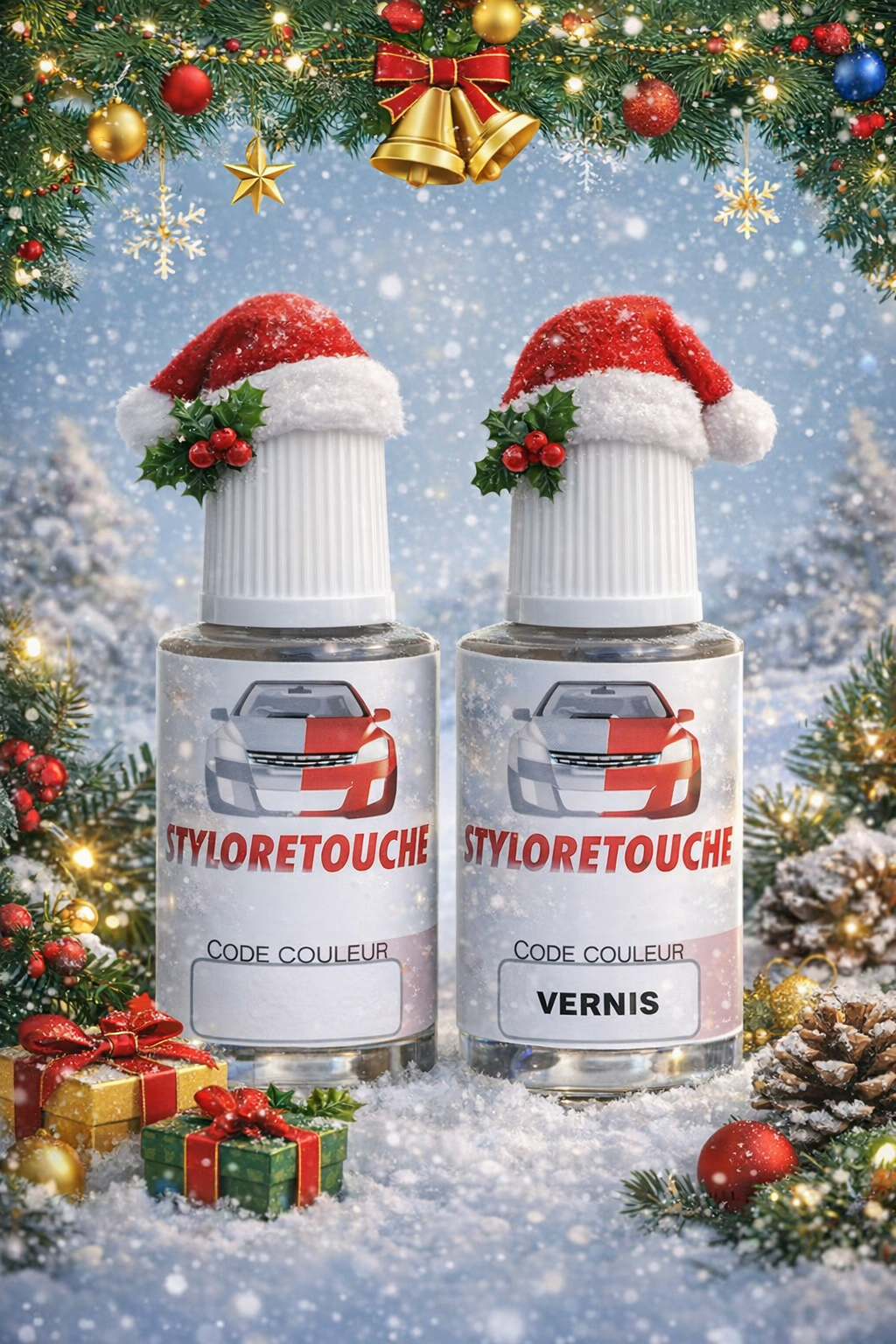 Stylo retouche peinture pour CITROEN de couleur BLANC BANQUISE ayant le code peinture EWP comprenant le stylo de peinture et le vernis.